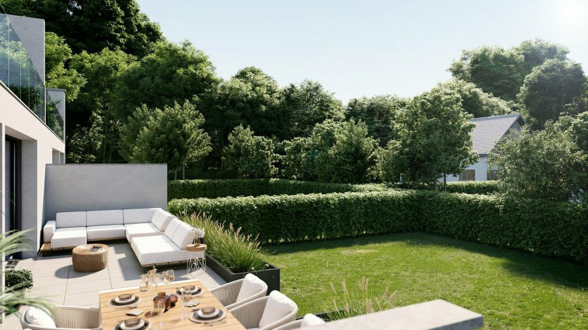 NOUVEAU PRIX!!! Très bel appartement neuf (rez-de- jardin) se composant comme suit : hall, d'entrée, grand living avec accès sur la belle terrasse de 31 m2 et le jardin, cuisine équipée ouverte de haut standing, 3 chambres à coucher dont une avec dressing et salle de bains, une 2ième salle de bains, 1 WC séparé, 1 cave, un garage pour 2 voitures, 1 emplacement de parking extérieur.Ce bien se situe dans une rue très calme ,à 10 minutes de l'Aéroport Findel, à 15 minutes de Luxembourg-Kirchberg, à 20 minutes du centre ville.