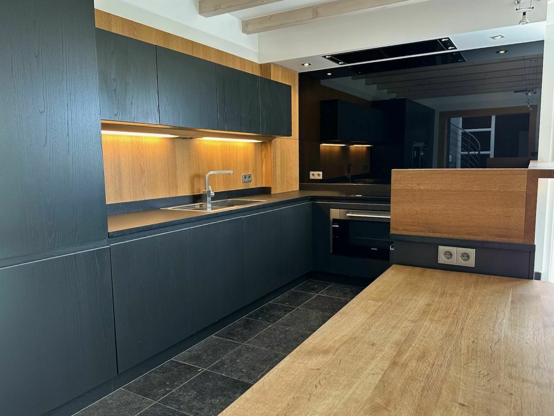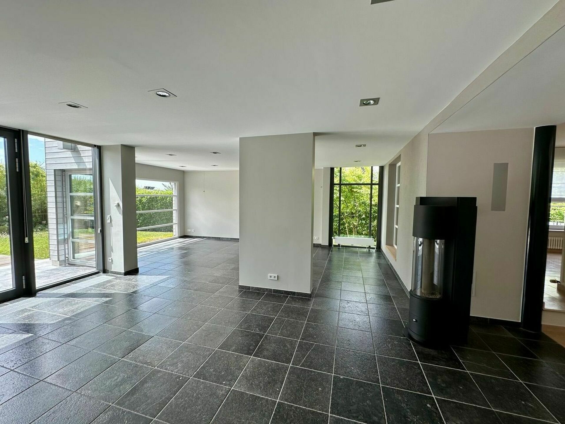 Superbe maison de haut standing se composant comme suit: hall d'entrée, cuisine ouverte entièrement équipée qui s'intègre harmonieusement à la salle à manger, dotée d'un poêle à pellets,ainsi qu'au salon lumineux.Une salle TV avec un coin lecture et un poêle en bois.